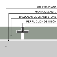 [/tab] [tab id=»3″]El éxito del sistema Click And Stone® se debe a la sencillez del perfil de unión en pvc, una junta que absorbe dilataciones y que ha sido galardonada en Alemania con el premio a la innovación tecnológica, porque abre la solución ‘en seco’ para los solados de piedra.